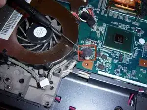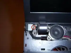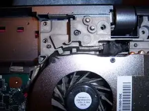 Вытащите оптический привод. Отложите его. Теперь снимите три маленьких винта, которые были под краем оптического привода.
