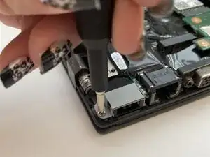 Отвинтите один винт длиной 3,0 мм крестовой отвёрткой Phillips #1, который фиксирует корпус разъёма питания.