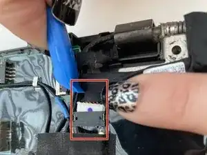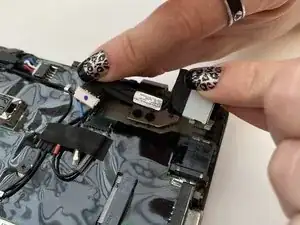 Отсоедините маленький белый разъём, поддев его пластиковым инструментом для вскрытия.