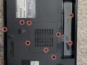 Я составляю руководство, чтобы подробно объяснить, как заменить разъём питания на Toshiba Satellite A505-6005. Хотя на iFixit есть много руководств, мне не удалось найти одно, соответствующее конструкции выбранного мной ноутбука. Я считаю, что это руководство поможет расширить уже имеющиеся обширные знания и позволит многим пользователям сэкономить деньги и успешно заменить разъём питания. Этот ремонт необходим, так как без возможности заряжать батарею ноутбук вскоре станет непригодным к использованию после разрядки блока питания. Чтобы избежать повреждений оборудования, настоятельно рекомендуется работать медленно и аккуратно. Компоненты маленькие и хрупкие. Что касается безопасности, единственный риск связан с разборкой системы при наличии напряжения — этого можно избежать, сняв батарею перед началом работы. Настоятельно рекомендуется использовать промаркированные ёмкости для размещения снятых винтов. Это поможет избежать потери винтов или оставшихся винтов после сборки ноутбука.