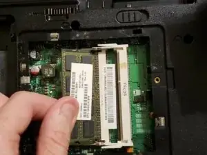 Используйте лопатку, чтобы аккуратно нажать на защёлки по бокам, удерживающие модули оперативной памяти. Затем извлеките модули оперативной памяти.