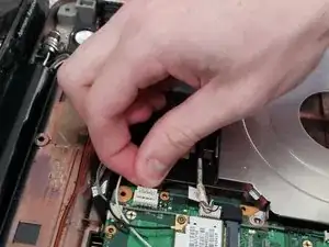 После снятия винта жёсткого диска аккуратно потяните за ленту, чтобы полностью отключить жёсткий диск.
