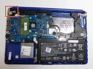 Найдите кронштейн разъёма зарядки в верхнем левом углу ноутбука.