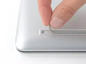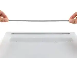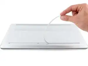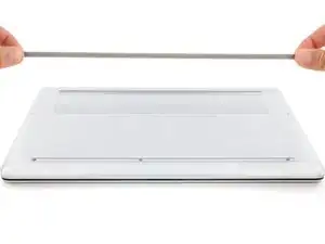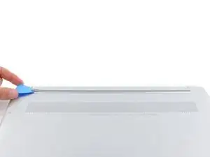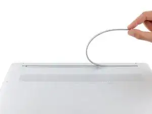 Используйте пластиковую лопатку, чтобы приподнять один конец передней резинки, пока вы не сможете схватить её пальцами.