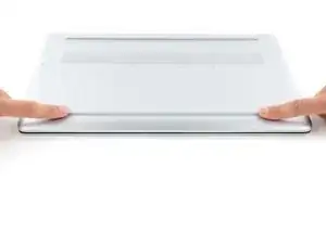 Переверните ноутбук так, чтобы резинки были направлены вверх.