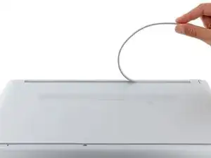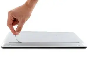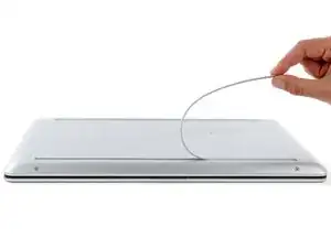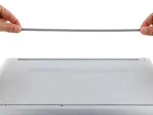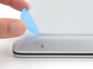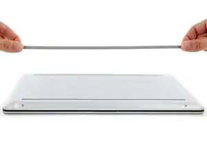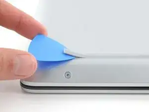 Используйте пластиковую лопатку, чтобы отклеить один конец задней резинки, пока не сможете ухватиться за нее пальцами.