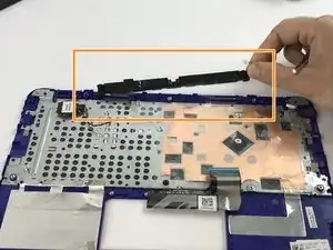 Используя отвертку, снимите пластиковую накладку в центре ноутбука.