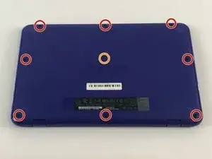 Удалите восемь винтов задней панели длиной 6 мм с помощью бит для отвертки Phillips PH1.