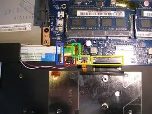 Отсоедините лентовый кабель кнопки питания от материнской платы.