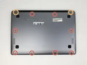 Из-за специализированных заклепок, используемых для соединения петли с крышкой (верхней половиной ноутбука), может быть крайне сложно заменить только петлю. Это руководство показывает, как удалить и заменить всю крышку ноутбука.