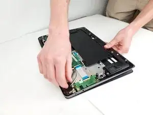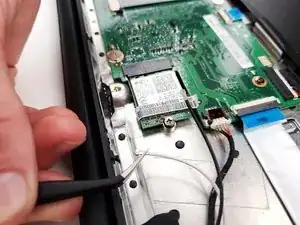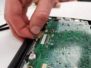 Отключите разъем дисплейной панели от материнской платы. Разъем должен выдвигаться от материнской платы.