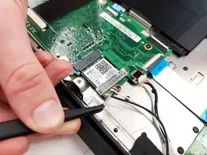 Используйте пинцет, чтобы отсоединить разъемы веб-камеры от материнской платы.