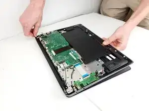 Чтобы снять крышку с ноутбука, поверните каждую сторону на петле и поднимите остальную часть ноутбука вверх и от крышки.