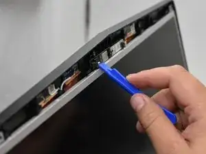 Используйте пластиковый инструмент для открытия, чтобы отключить экран от верхнего крепления.
