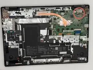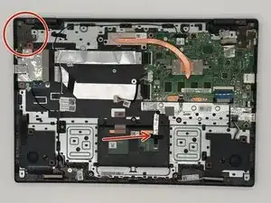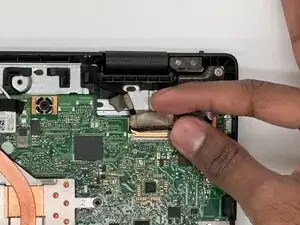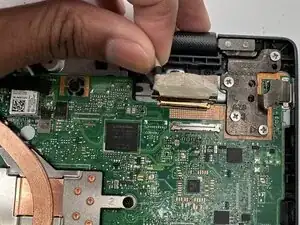 Найдите кабель сборки дисплея под правым шарниром корпуса.
