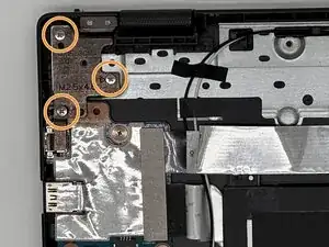 Удалите три винта длиной 5 мм на левом шарнире с помощью отвёртки Phillips #1.