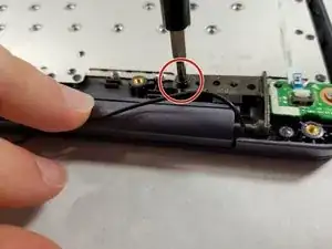 Используя отвёртку Phillips #0, выкрутите два винта длиной 3 мм, расположенные сверху и слева от аккумулятора.