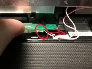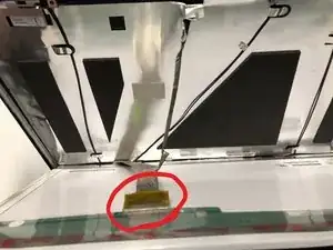 Отключите сборку от чипа, расположенного между петлями, потянув провода вправо.