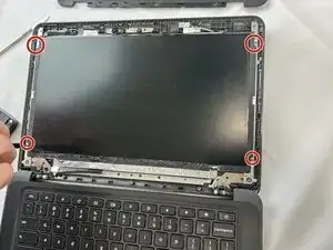 Используя отвертку Phillips #0, снимите четыре в общей сложности винта длиной 3,4 мм с дисплея, по одному из каждого угла.