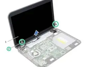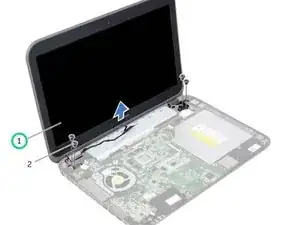 Удалите винты, которые крепят сборку дисплея к корпусу компьютера.