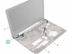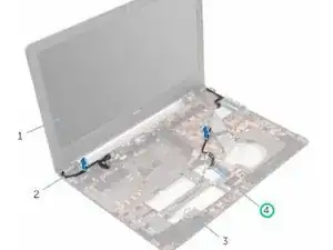 Установите винты, удерживающие петли дисплея к корпусу компьютера.