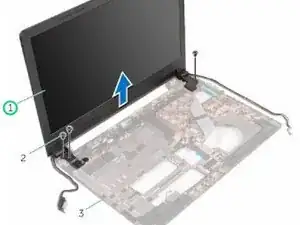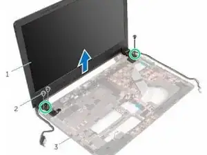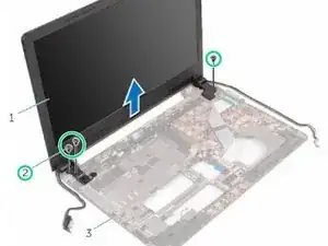Удалите винты, удерживающие петли дисплея к корпусу компьютера.