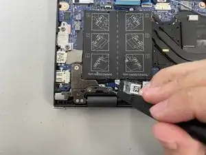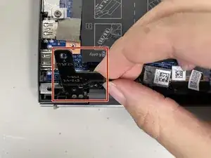 Поднимите панель петли с левой стороны ноутбука.