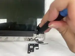 Удалите шесть серебристых крестовых винтов длиной 4 мм, которые крепят петли к экрану.