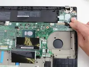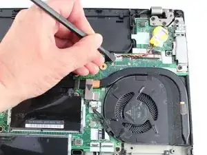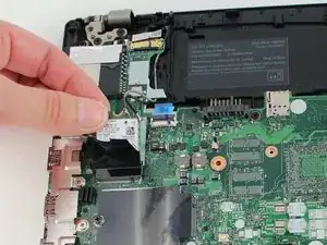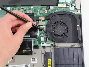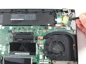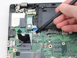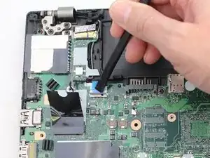 Используйте лопатку, чтобы извлечь разъём батареи параллельно материнской плате и вынуть его из гнезда на материнской плате.