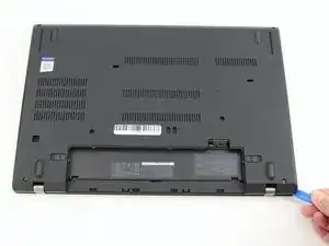 Если кажется, что область под батареей не расшатана, эти защёлки могут удерживать крышку на ноутбуке. Используйте инструмент для открытия, чтобы приподнять защёлки и попробуйте снова снять крышку.