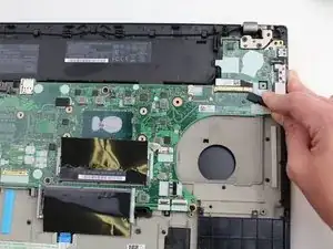 Используя черную нейлоновую лопатку, удалите разъём кабеля NFC и разъём трекпада с материнской платы.
