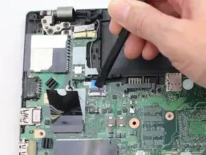 Используя черную нейлоновую лопатку, отключите кабель LCD от материнской платы.