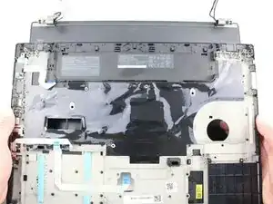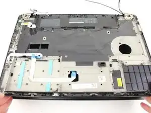 Поднимите обод клавиатуры и сдвиньте его из петель, чтобы отделить от сборки ЖК-дисплея.