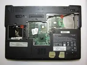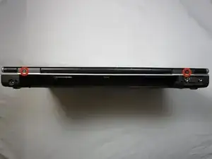 Держа компьютер прямо, задней стороной к себе, снимите два винта Phillips #0 длиной 3 мм.