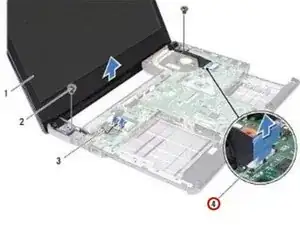 Поднимите и извлеките сборку экрана из основания компьютера.