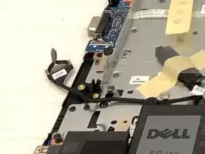 Отогните любую ленту и осторожно поднимите пластиковую язычок, удерживающий шлейф дисплея на месте. Аккуратно вытяните шлейф из разъема.