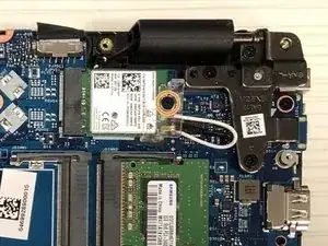 Удалите винт, удерживающий карту и пластиковую защиту на месте.