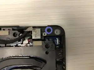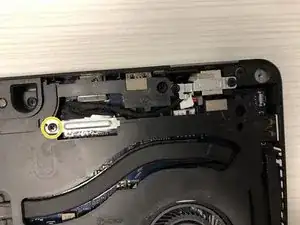 Удалите ленту, удерживающую кабель дисплея к ноутбуку.