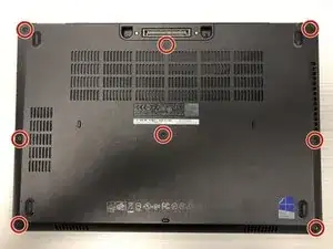 Ослабьте 8 винтов Philips на дне ноутбука. Они не выйдут полностью, но ослабьте, пока не будут вращаться свободно.