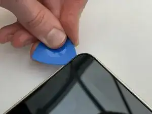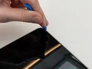 Заставьте край пластиковой монтажной лопатки iFixit между внешним корпусом и экраном и начните поддевать экран, отрывая его от корпуса.
