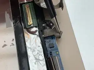 Разъём дисплея не является ZIF-разъёмом, и он легко выскочит при удалении второй полоски ленты.