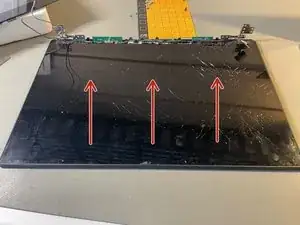 Вытяните язычки снизу из сборки дисплея. Делайте это медленно, очень аккуратно и равномерно.