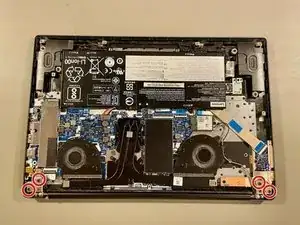 Откройте ноутбук под углом 90 градусов. Открутите 4 винта PH0 (все одинаковой длины).