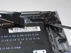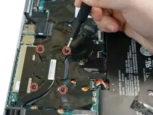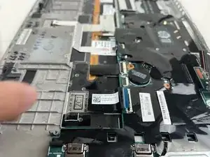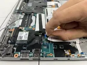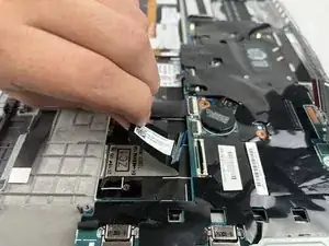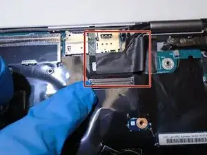 Проследите ленточный кабель, идущий от левого динамика к материнской плате.