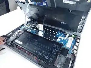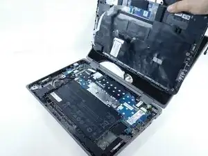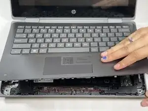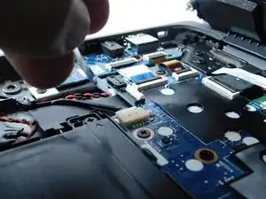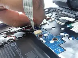 Поднимите сборку клавиатуры, чтобы получить доступ к двум шлейфам.