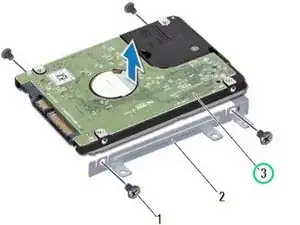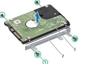 Удалите четыре винта, которые крепят кронштейн жесткого диска к жесткому диску.