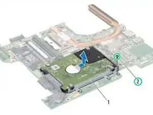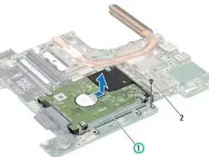 Удалите винт, который крепит сборку жесткого диска к системной плате.