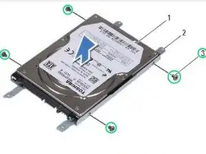 Установите обратно четыре винта, которые крепят кронштейн жесткого диска к жесткому диску.