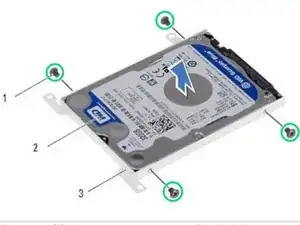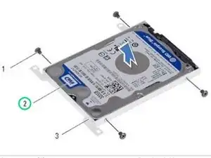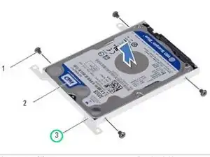 Удалите винты, которые крепят жесткий диск к кронштейну жесткого диска.