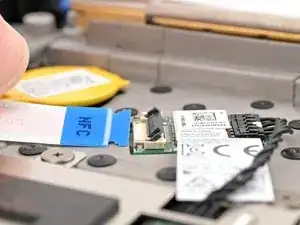 Используйте лопатку или ноготь, чтобы поднять фиксирующую планку на ZIF-разъёме кабеля NFC.